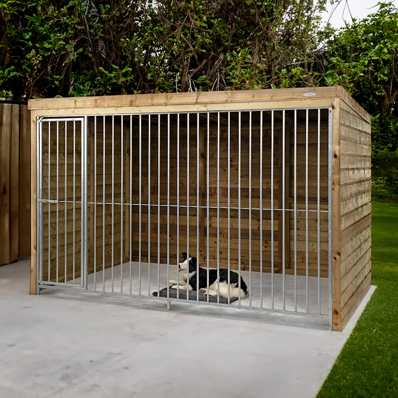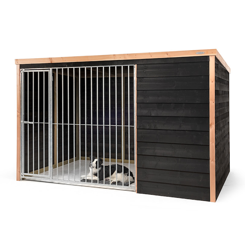 Deze hondenkennel is behandeld en heeft hierdoor een lange levensduur.