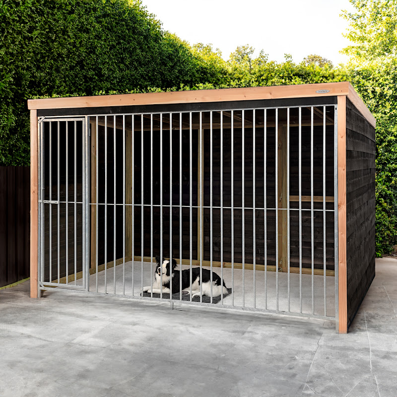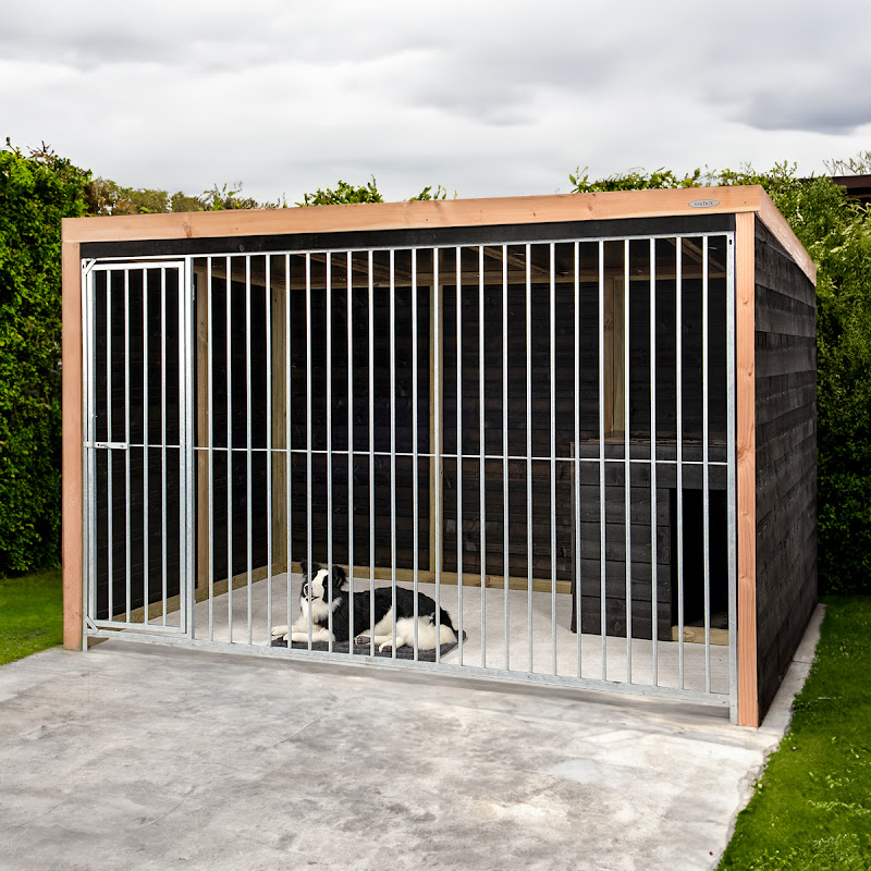 Luxe buiten hondenkennel vervaardigd uit onderhoudsloose materialen.