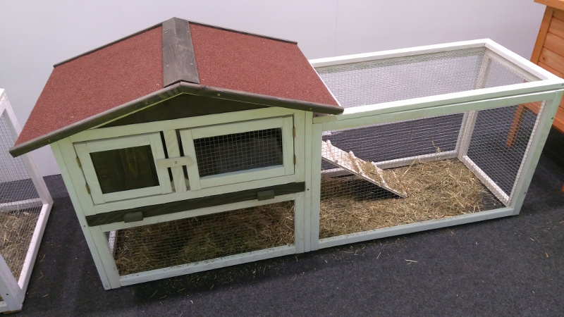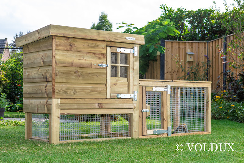 Dit konijnenhok is gefabriceerd van geimpregneerd hout en is hierdoor onderhoudsloos.