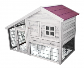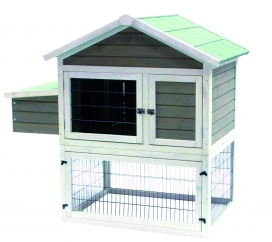 Deze konijnenvilla is uitgerust met meerdere deurtjes, een looptrap met griplatten en heel ruim nachtverblijf.