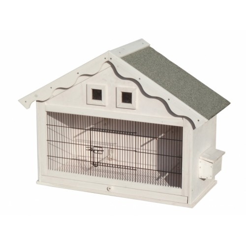 Mooie (muur) voliere voorzien van voederbak, 4 zitstokken, ramen, vuillade deur , ...