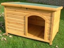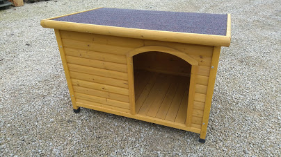 Het hondenhok is beschikt over een met dakleer bedekt dak voor een goede afwatering.