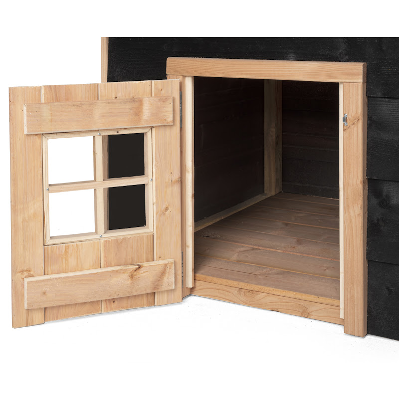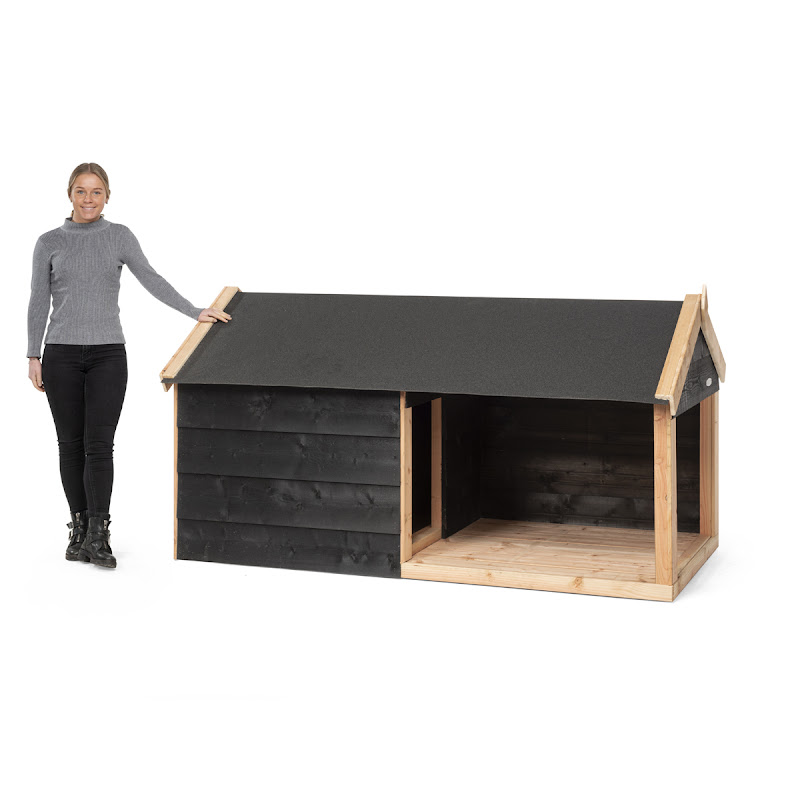 Dit luxe hondenhok voor buiten is uitgerust met zwart potdeksel en een Douglas frame.