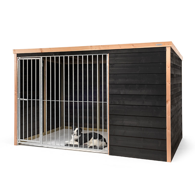 De kennel is uitgerust met een kennelpaneel met 16 mm spijlen.