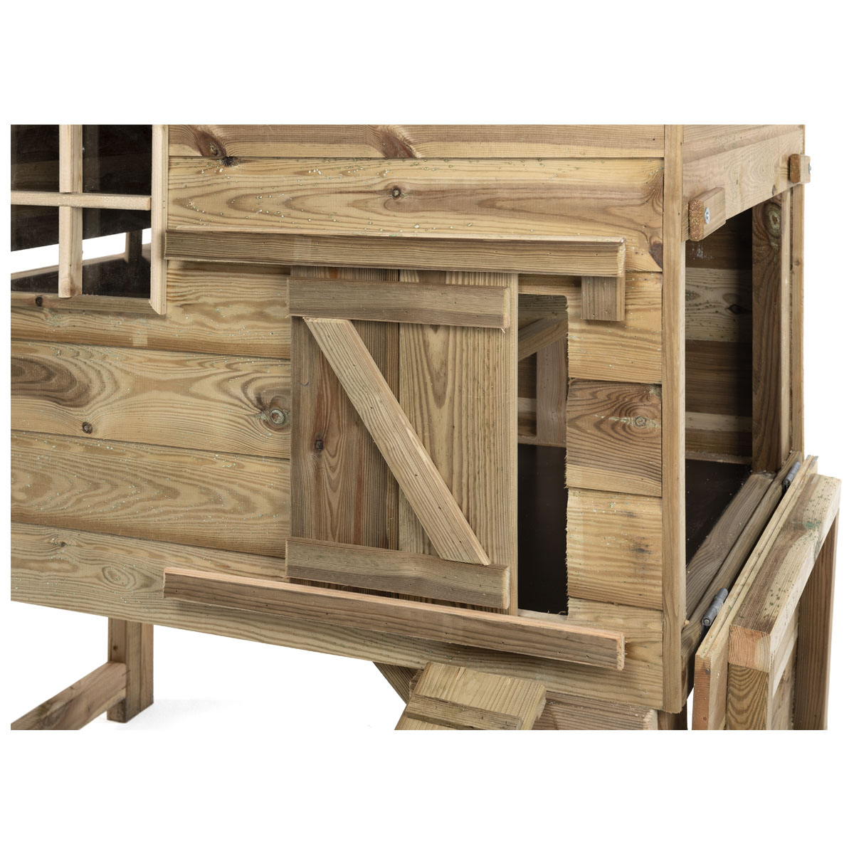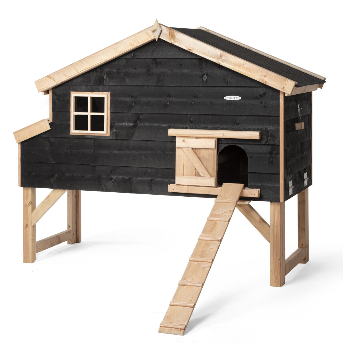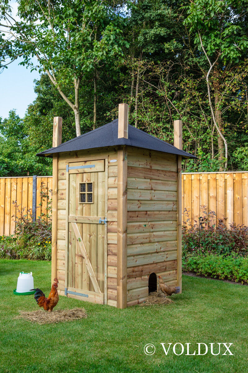 Kippenhok dennis 1, gemaakt uit geimpregneerd hout op een verhoog.