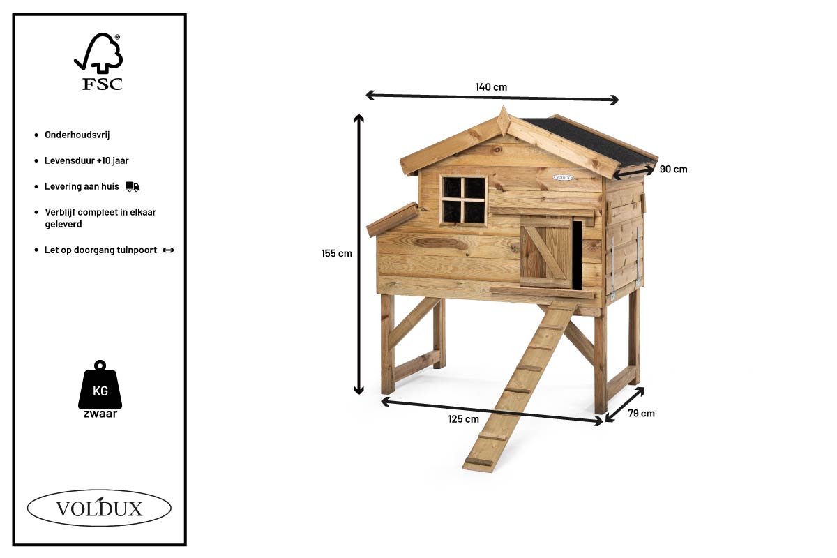 Afmetingen van dit kippenhok zijn: 145 x 75 x 110 cm.