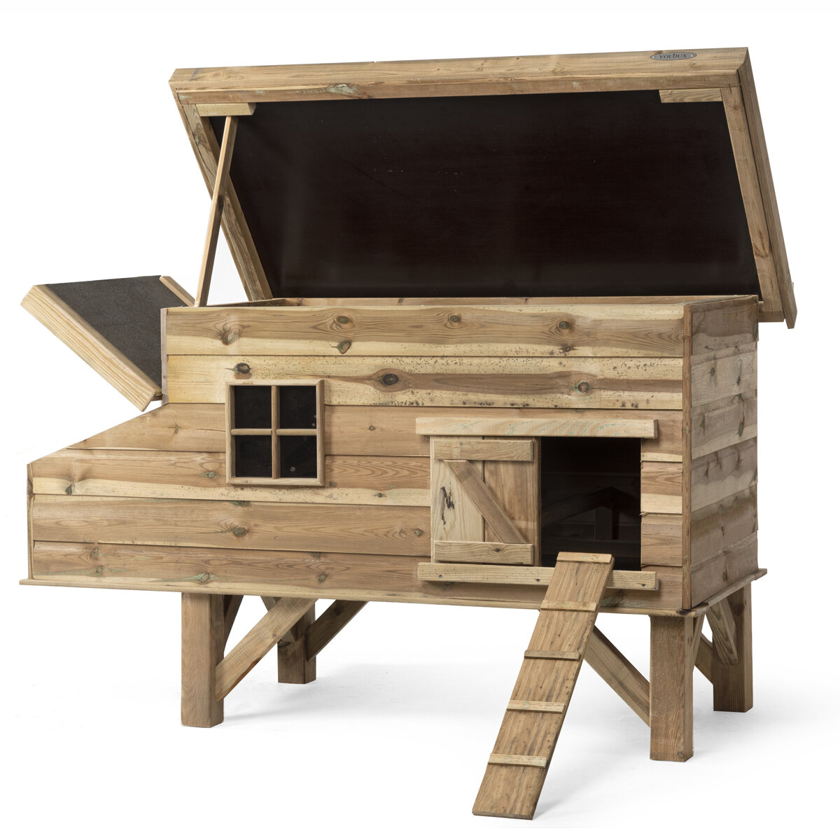 Kippenhok Brahma 3 is een geimpregneerd kippenhok voorzien van een scharnierend dak, en scharnierend frontpaneel hierdoor is het hok eenvoudig schoon te maken.