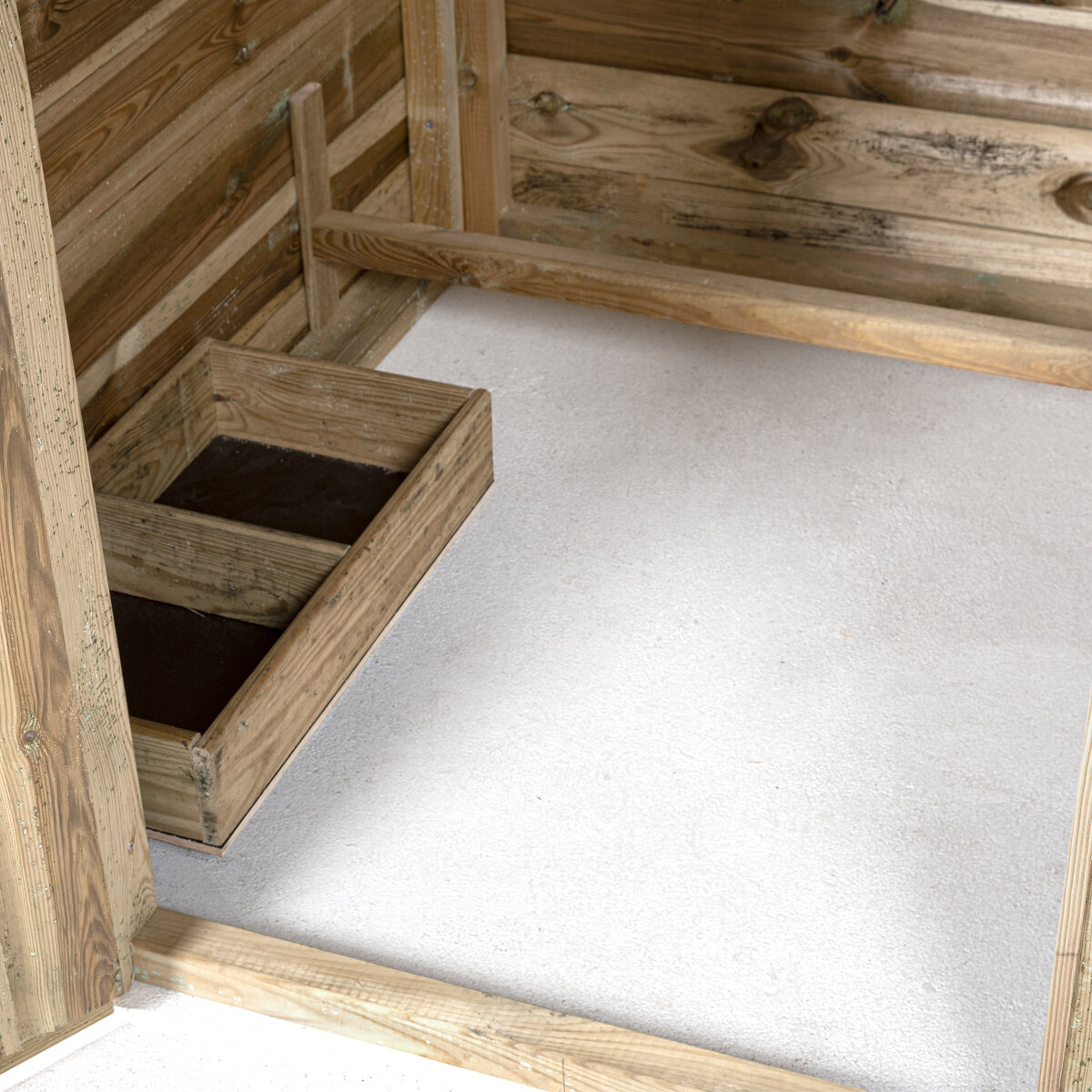 Binnenin het hok is een legbak voorzien.