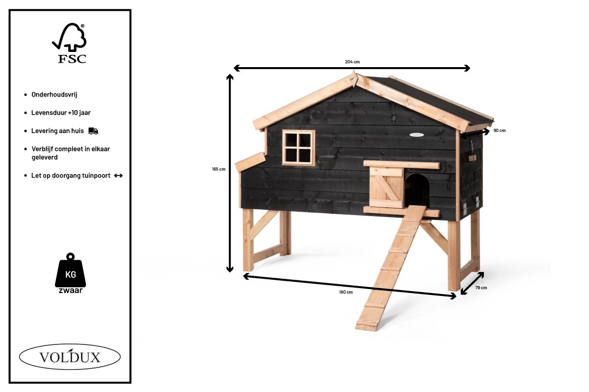 Afmetingen van dit kippenhok zijn: 165 x 85 x 120 cm.