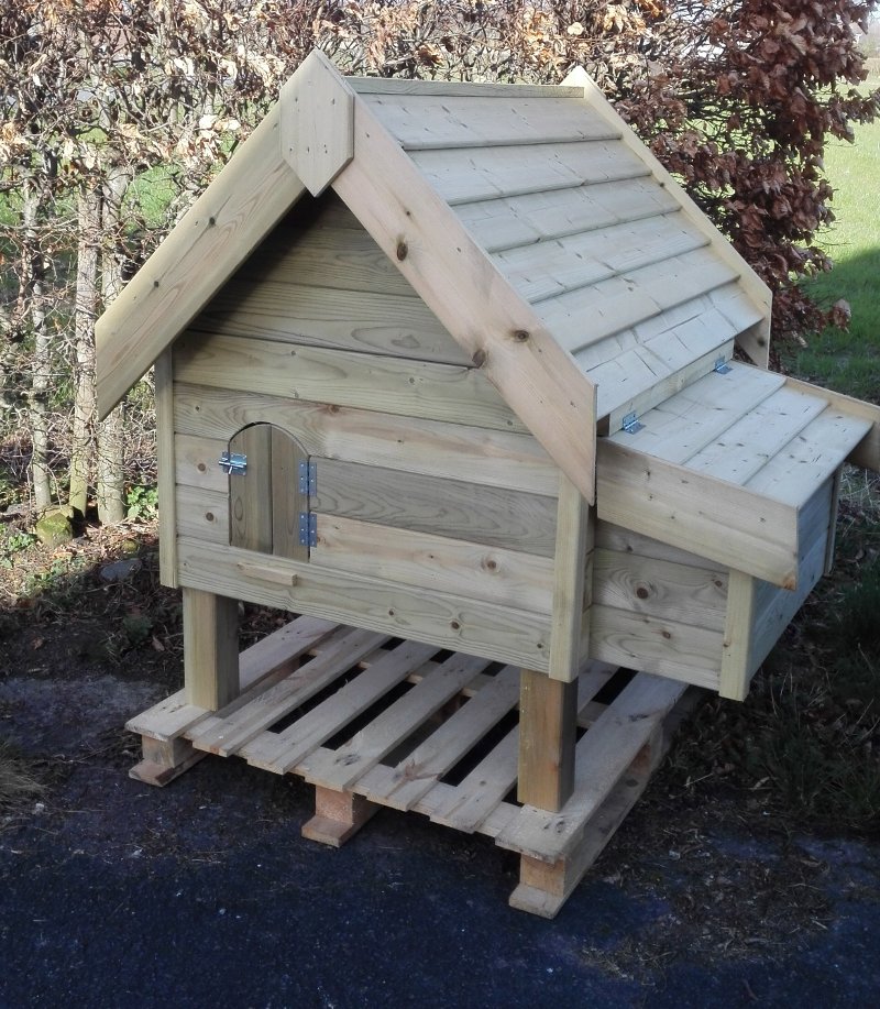 Dit kippenhok is voorzien van 2 zitstokken, een vuillade, ladder, verhoogd onderstel (zodat de kippen kunnen schuilen onder het hok).