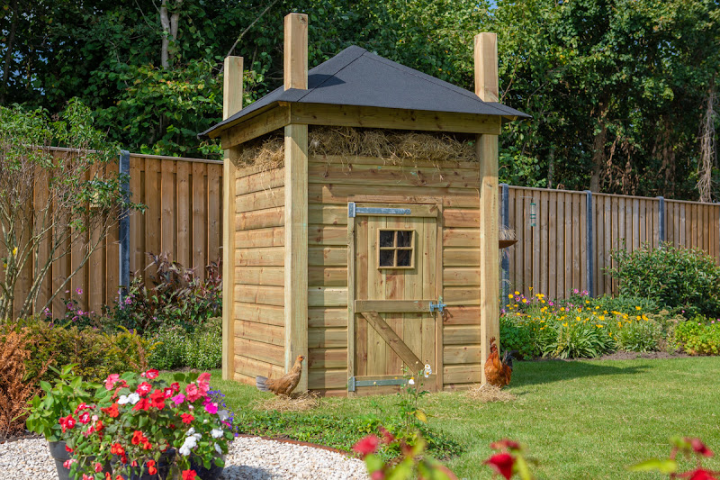 Le poulailler botte de foin Eline a une apparence ludique avec l'apparence d'une grange à foin.