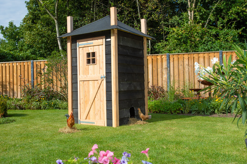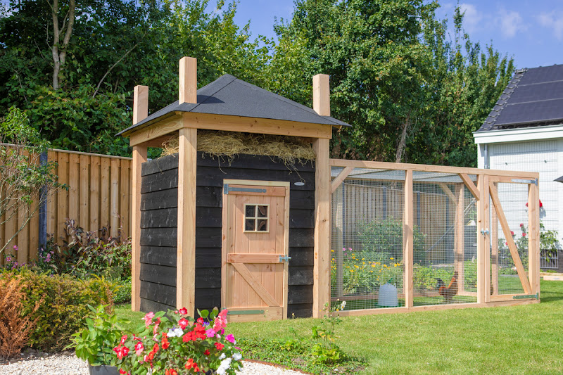 Grand poulailler Douglas doté de magnifiques couvercles noirs.