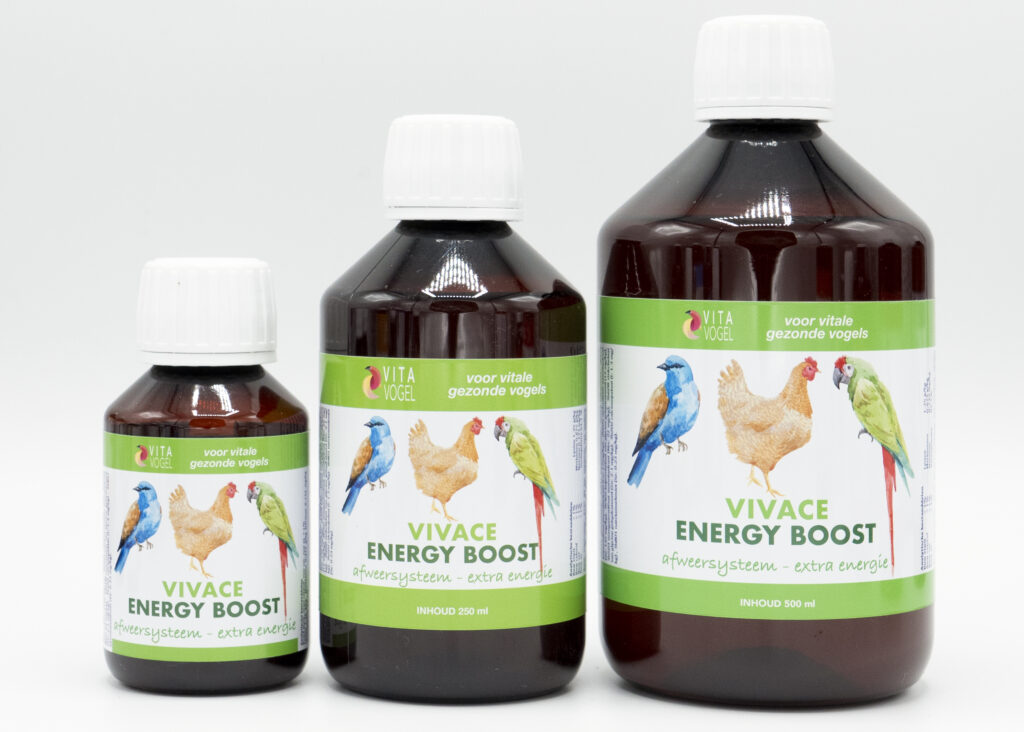 Vivace Energy Boost van VitaVogel is een energiesupplement op basis van vitaminen, mineralen, aminozuren (methionine, tryptofaan, treonine, lysine), glucose en medicinale plantenextracten zoals Ginseng en Echinacea. Het is specifiek gericht op het leveren van extra energie, bouwstoffen en het stimuleren van het natuurlijke immuunsysteem. Dosering: 5β10 ml per liter water gedurende 4β7 dagen. Inhoud: 250 ml.π Leverbaar naar π§πͺ π³π±